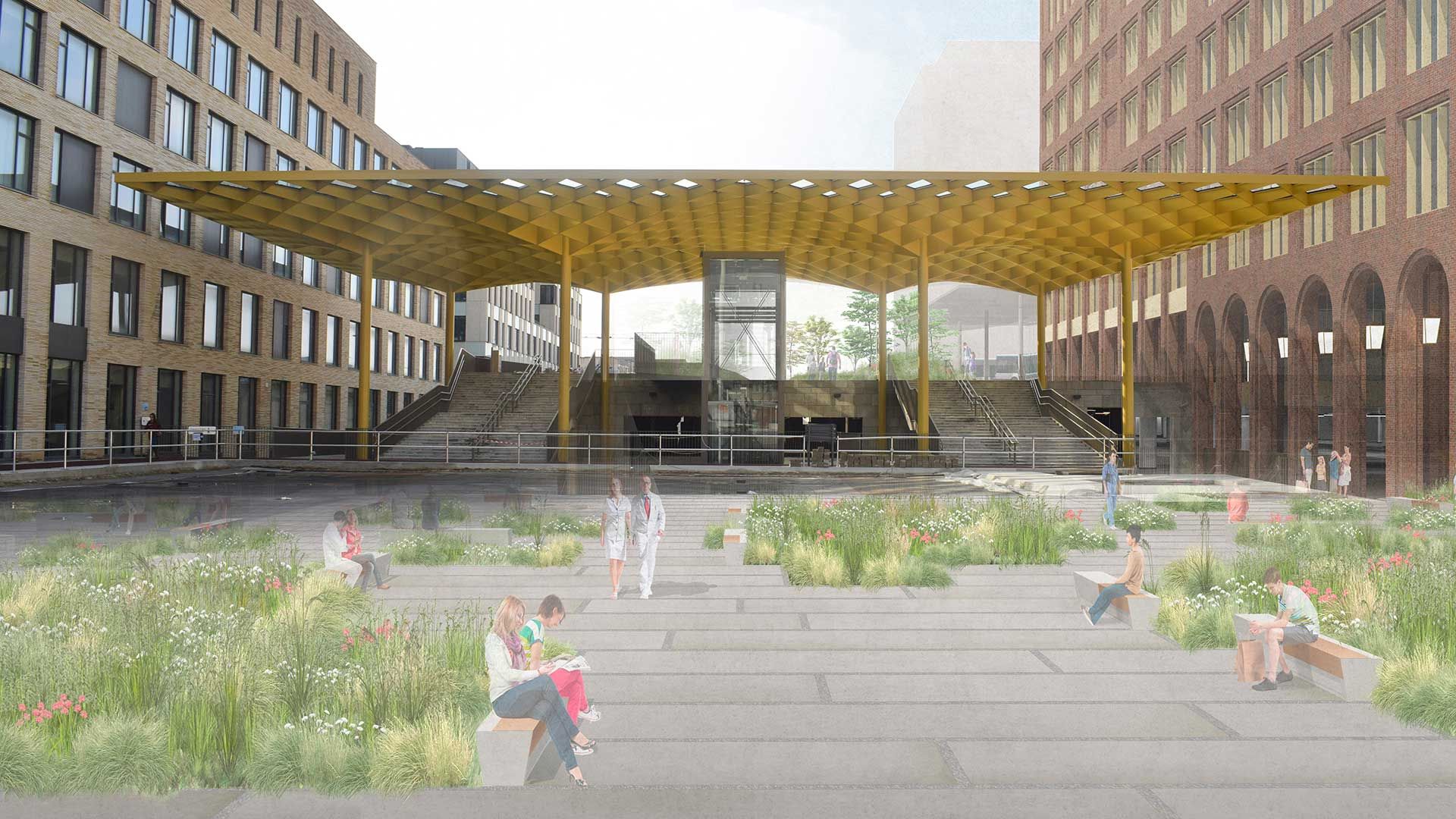L’UZ Gasthuisberg (Louvain) est un hôpital en pleine évolution. Afin d’accentuer le nœud de circulation central entre les fonctions hospitalières existantes et les développements futurs mais aussi de guider efficacement les visiteurs vers leur destination, un auvent élancé a été construit pour couvrir le grand espace de circulation avec un complexe d’escaliers et d’ascenseurs. Il constitue également un repère visuel important pour la zone d’entrée occidentale.