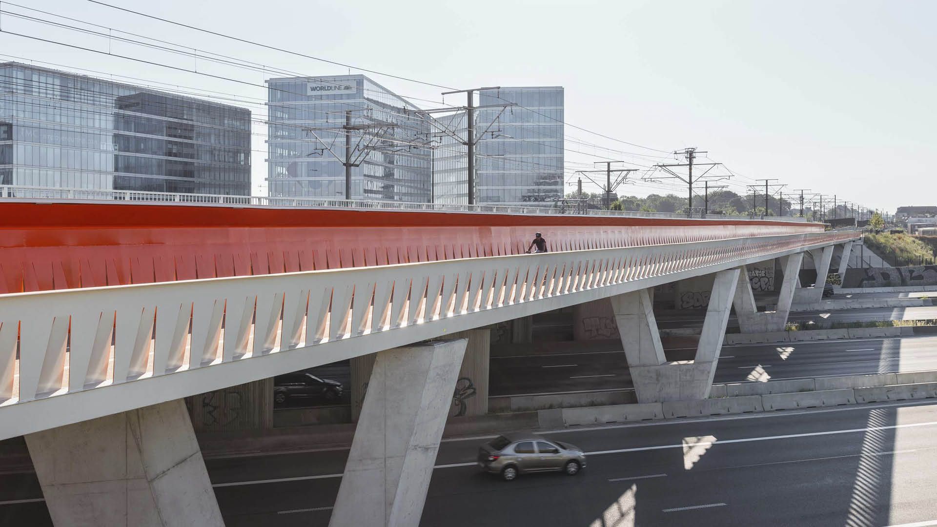 Le pont cycliste qui enjambe le Ring de Bruxelles a une longueur d'environ 169 m. La superstructure sera constituée d'un tablier en acier à partir d'un caisson fermé avec un garde-corps et un auvent collaborant.