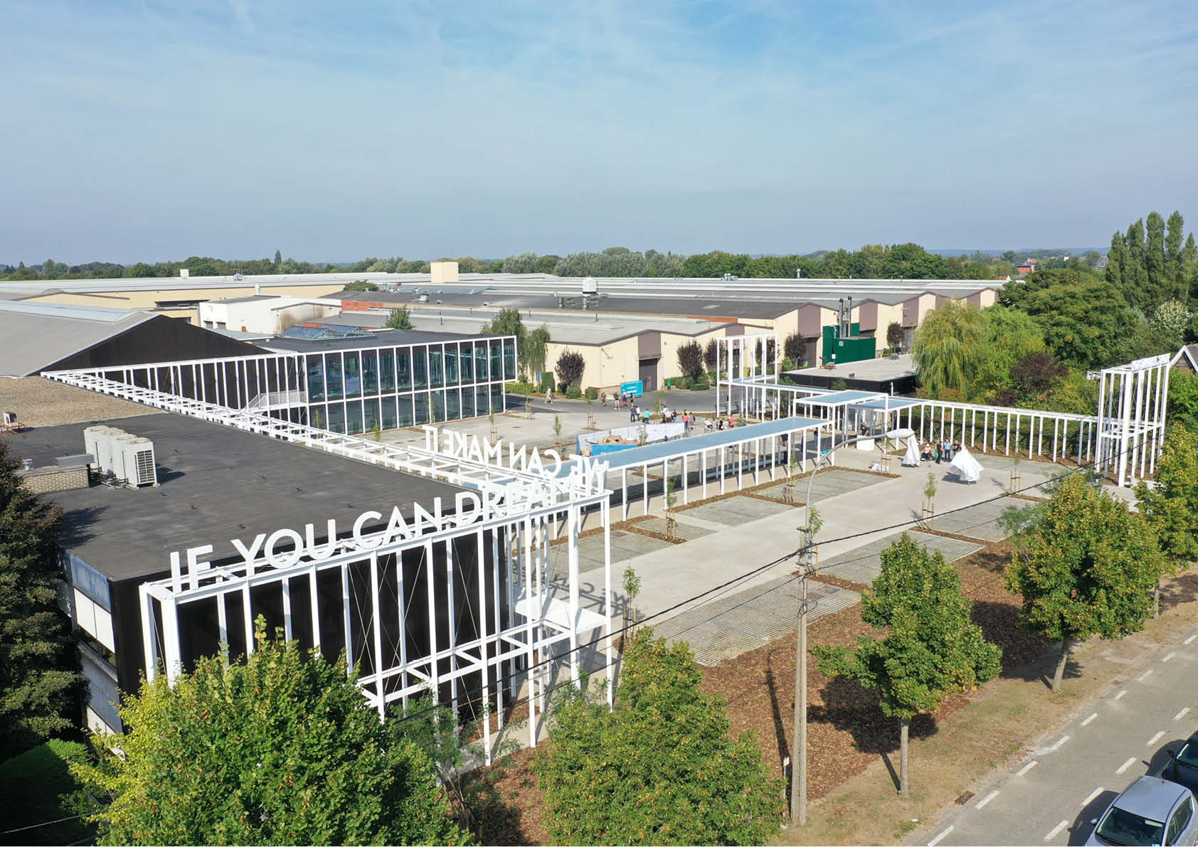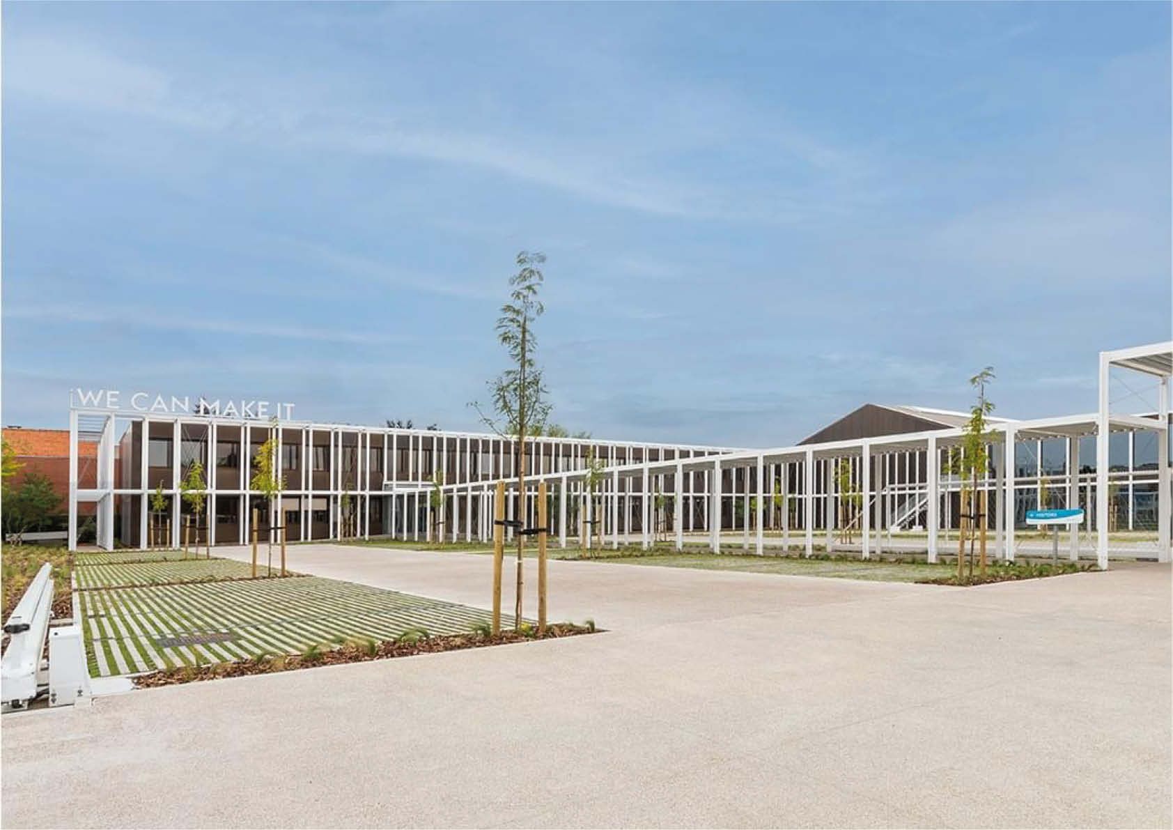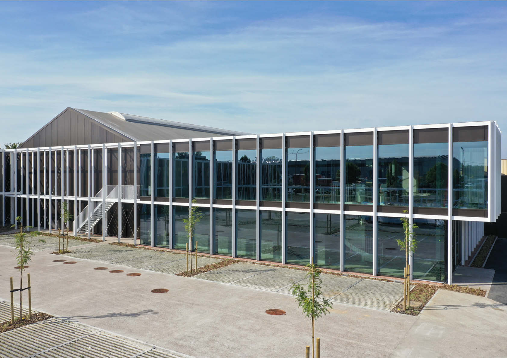 De overige structuren zijn open om zoveel mogelijk lichtinval te hebben in de kantoorgebouwen. D.m.v. inox kabelnetten is ook een fysieke afsluiting voorzien tussen de bezoekersparking en de parking voor eigen personeel.