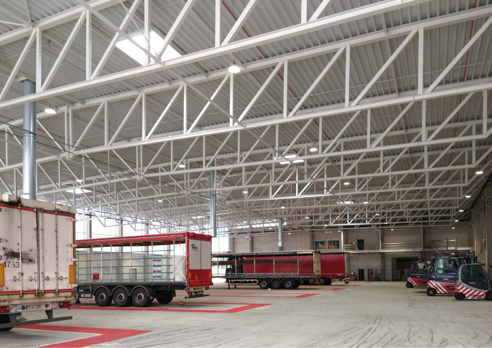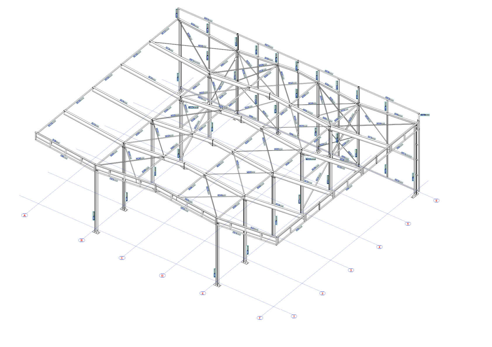 De staaltoepassingen binnen dit project zijn legio: stalen vakwerken met overspanningen tot 54 meter en een maximumgewicht van circa 8,5 ton (goed voor 936 ton in totaal), opgehangen stalen loopbordessen (meer dan 27 ton traanplaten), een gevelbekleding uit circa 8500 m² stalen sandwichpanelen en circa 17.500 m² geprofileerde stalen dakplaten. Bijzonder was dat de productie gedurende de volledige uitvoeringsfase gevrijwaard moest worden, waardoor elk bouwdeel in aparte fases is gerealiseerd.